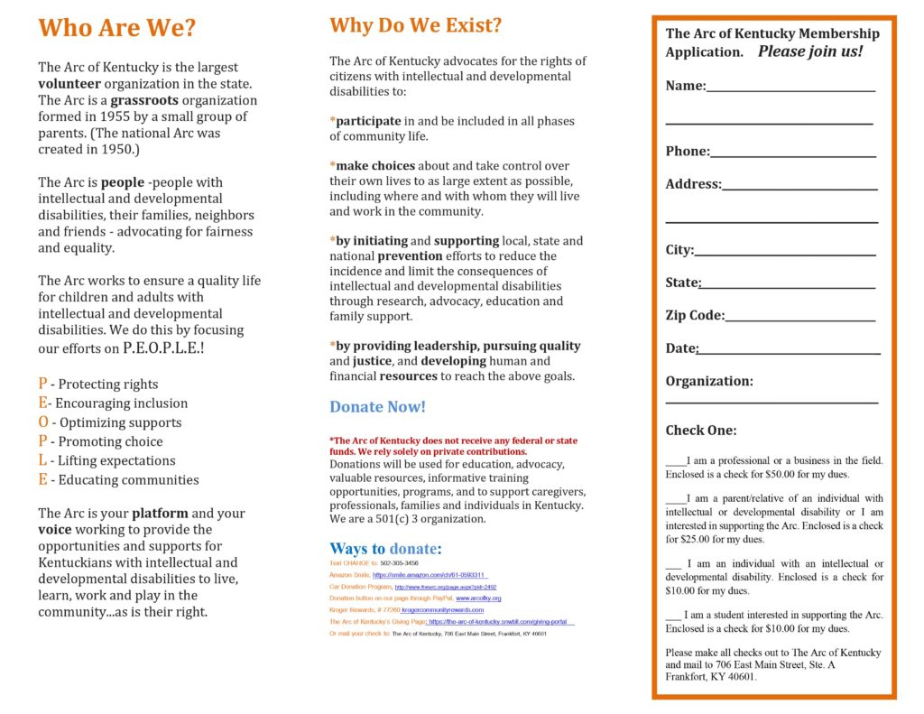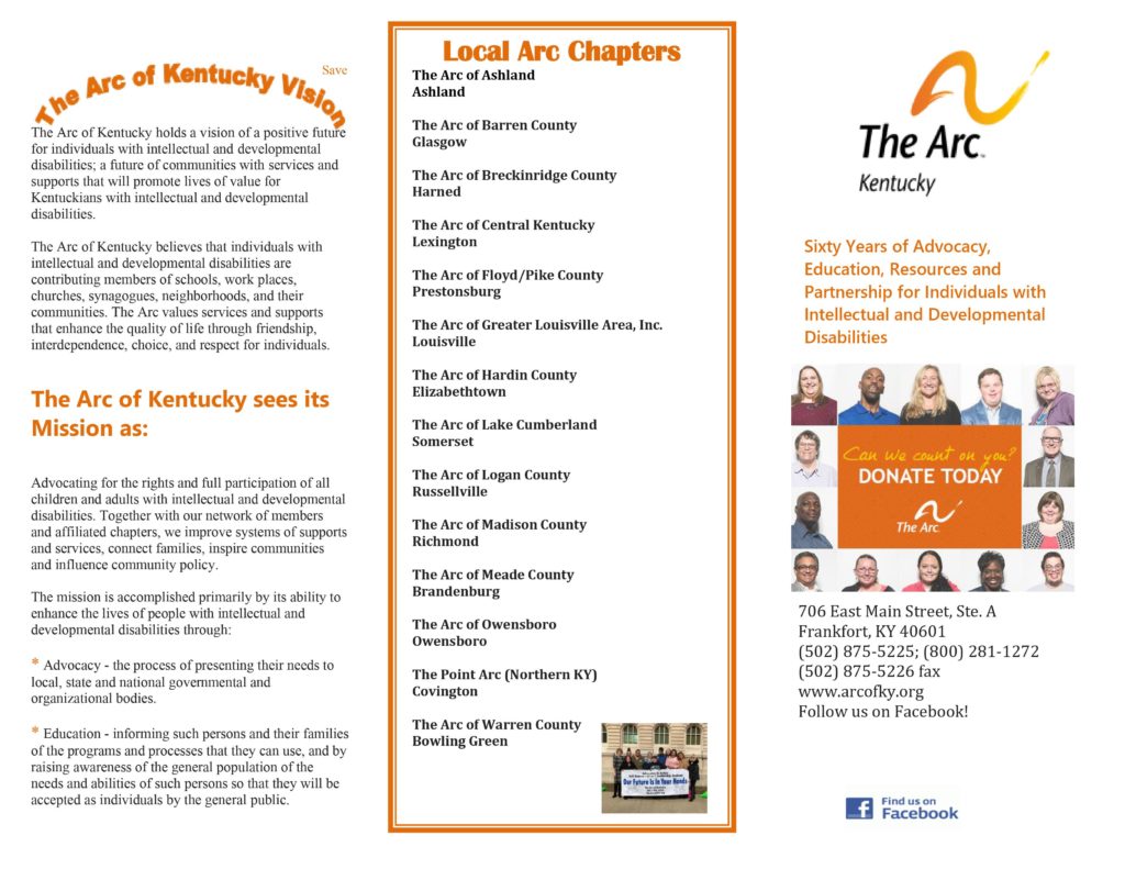 The Arc of Kentucky advocates for the rights of citizens with intellectual and developmental disabilities…